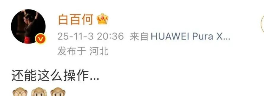 没头没尾地发了六个字:“还能这么操作…”,再加上三个表情——捂眼、捂耳、捂嘴,一副“这事离谱到把我三观都震碎了”的样子。