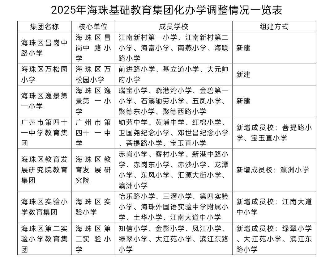 海珠区教育局相关负责人介绍,2025年是“十四五”规划收官之年,也是谋划“十五五”发展的关键之年,以集团化办学为抓手,推动基础教育从“一张蓝图”向“全域开花”、从“资源共享”向“发展共生”深刻转型,让优质资源成为真正流动的民生工程,更是回应群众对优质均衡教育期盼的关键举措。